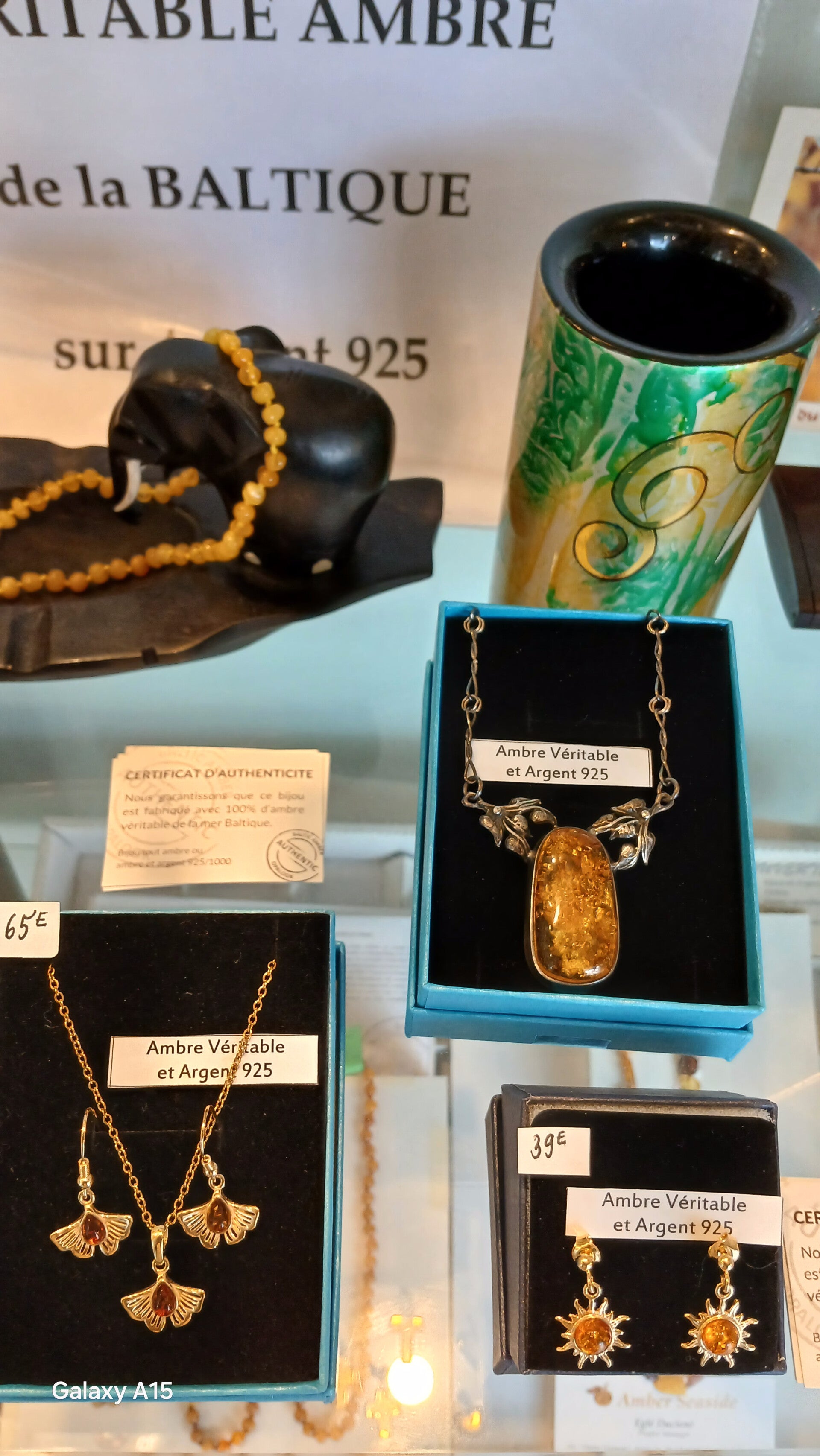 Découvrez une sélection raffinée de bijoux en ambre véritable, choisis pour leur qualité, leurs nuances miel et cognac, et leur luminosité unique.